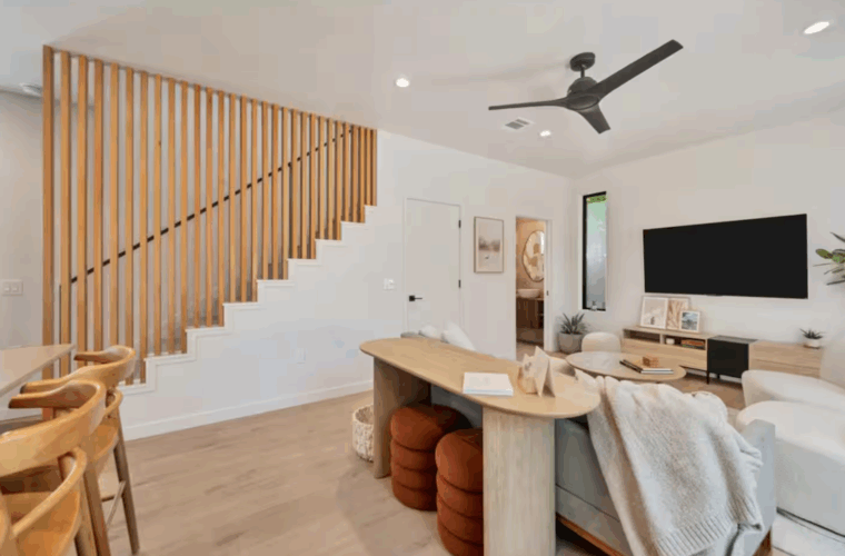 Designed to comfortably sleep up to four guests, the home features two cozy bedrooms and a bright, open concept living space perfect for relaxing or spending time together.